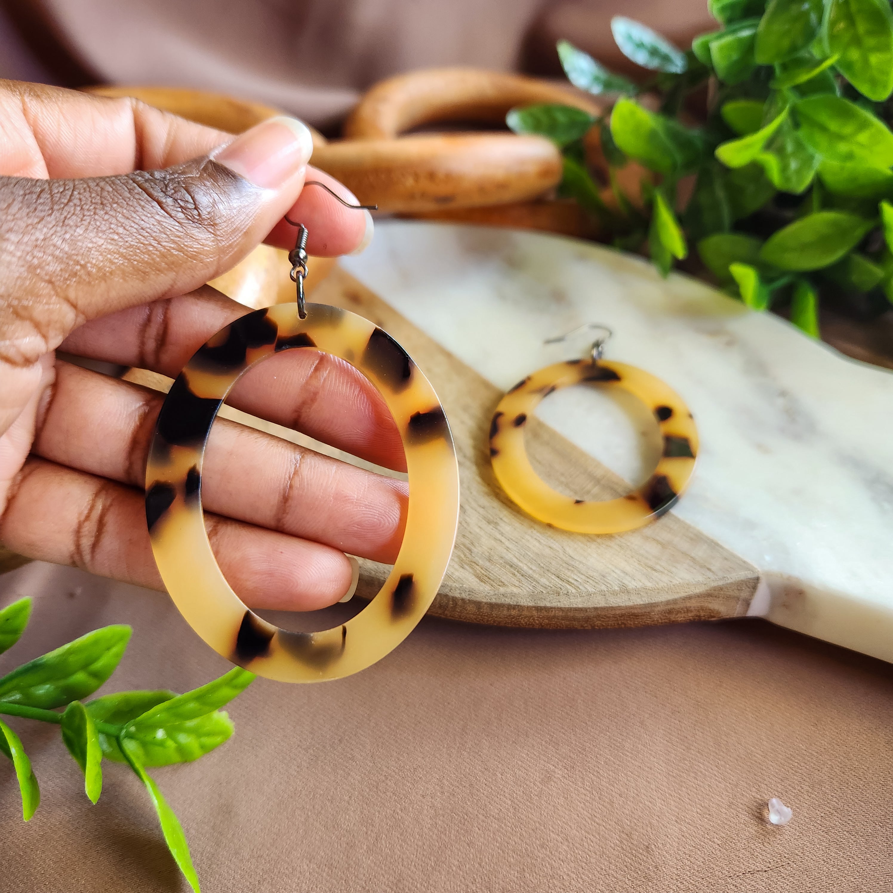 Elevate your style and make a bold statement with our stunning Big Mama Dangles. These extraordinary earrings are meticulously crafted, solely using high-quality resin, and boast an elegant peach tortoiseshell design. With their large, oval shape and versatile nature, they effortlessly complement any hairstyle, whether you prefer your hair up or down.