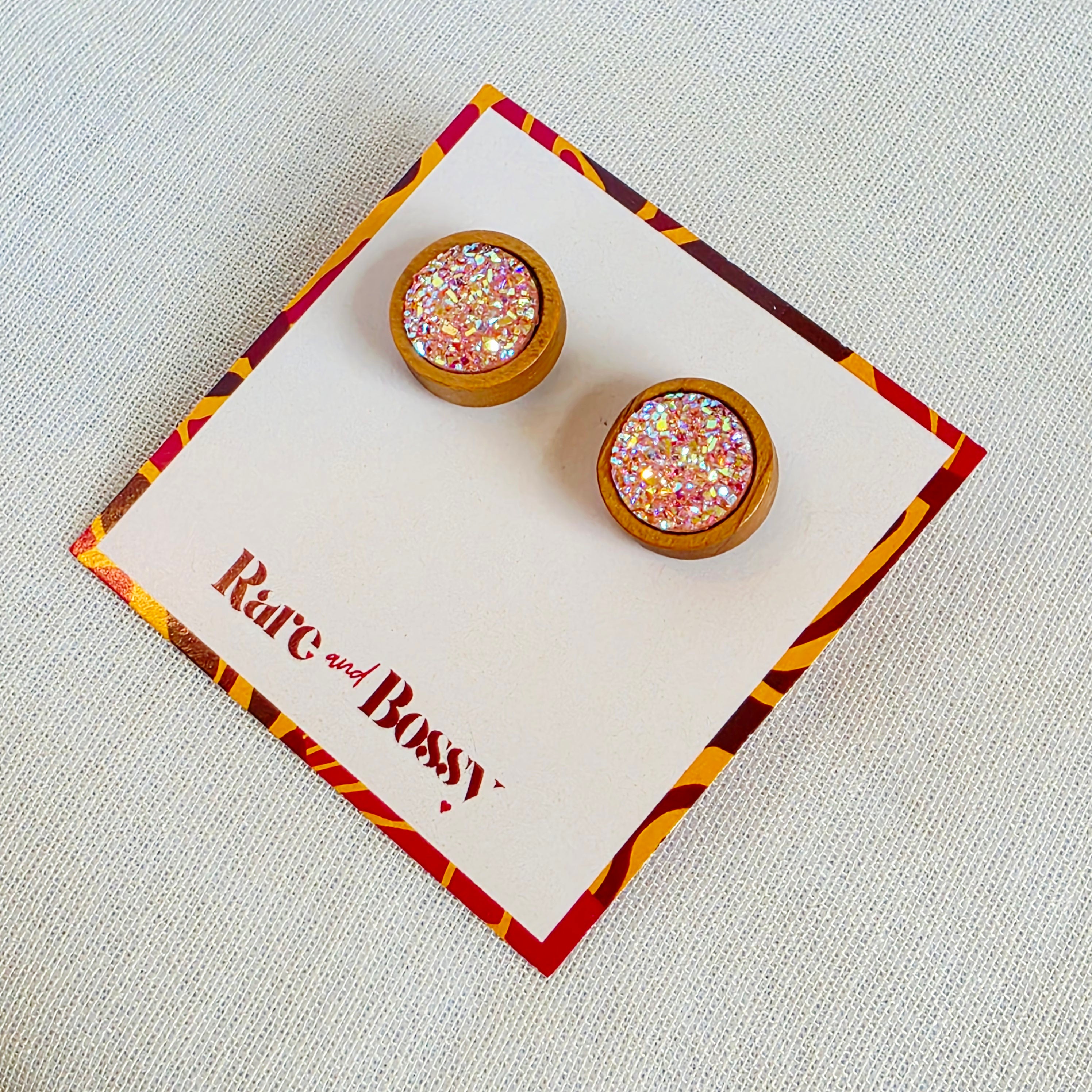 Soft sparkle. Strong presence. These lightweight Blush Pink Druzy Resin Studs are made for women who love a little shine without going over the top. Designed in a bold 18 mm size, they bring texture, glow, and confidence to your everyday look.