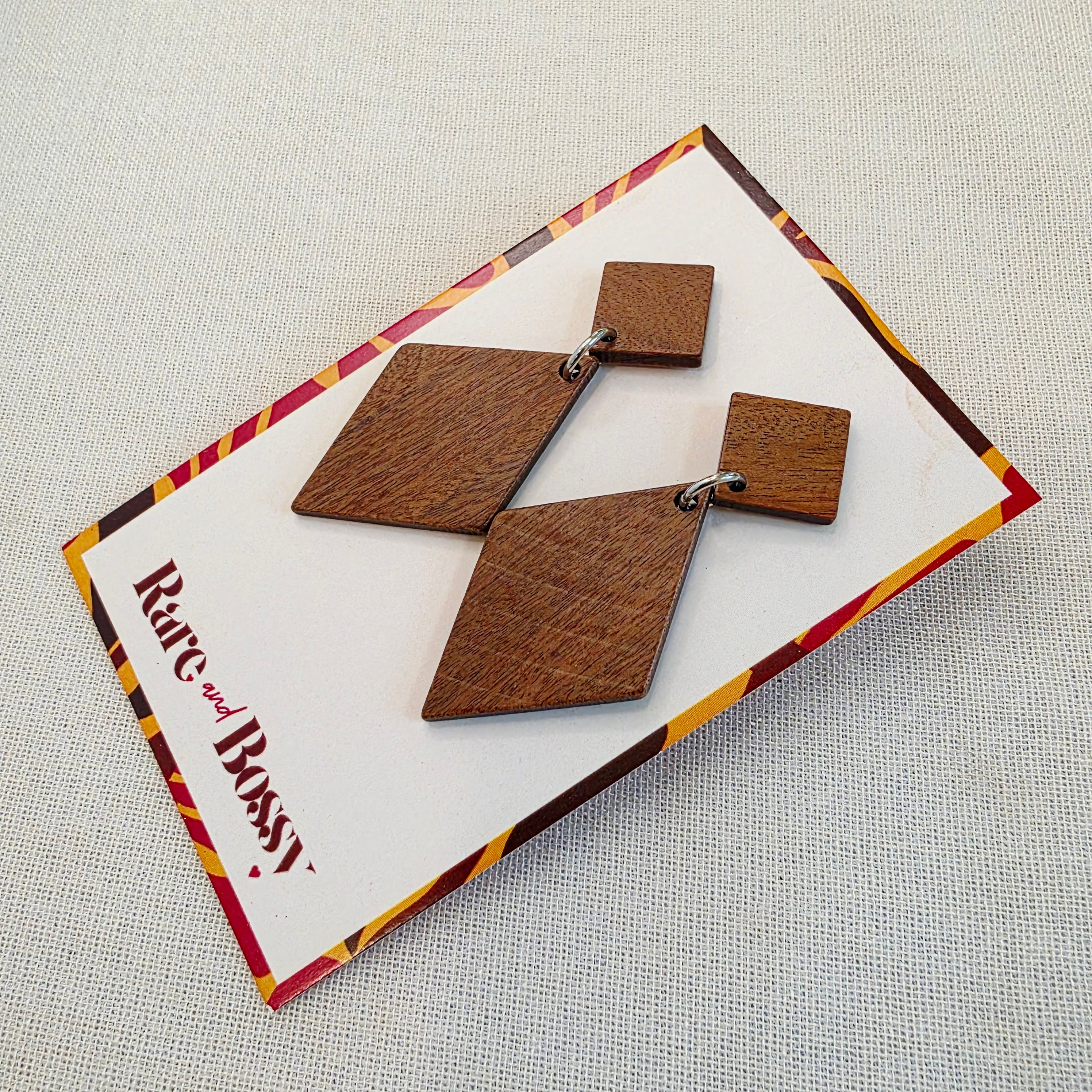 These wooden diamond dangles feature a clean geometric silhouette that pairs easily with both casual outfits and elevated looks.
