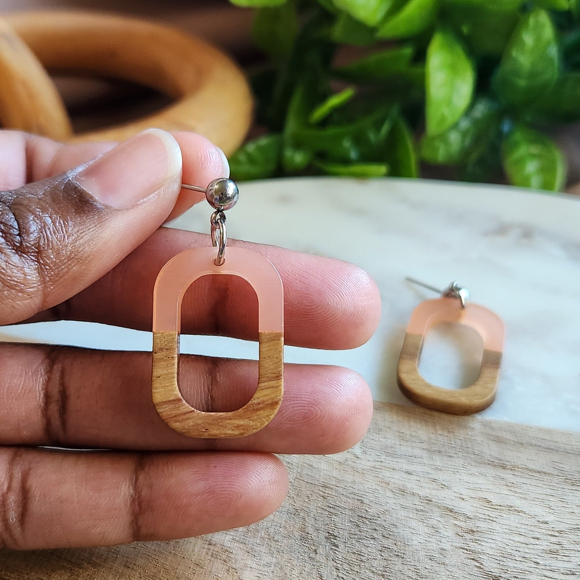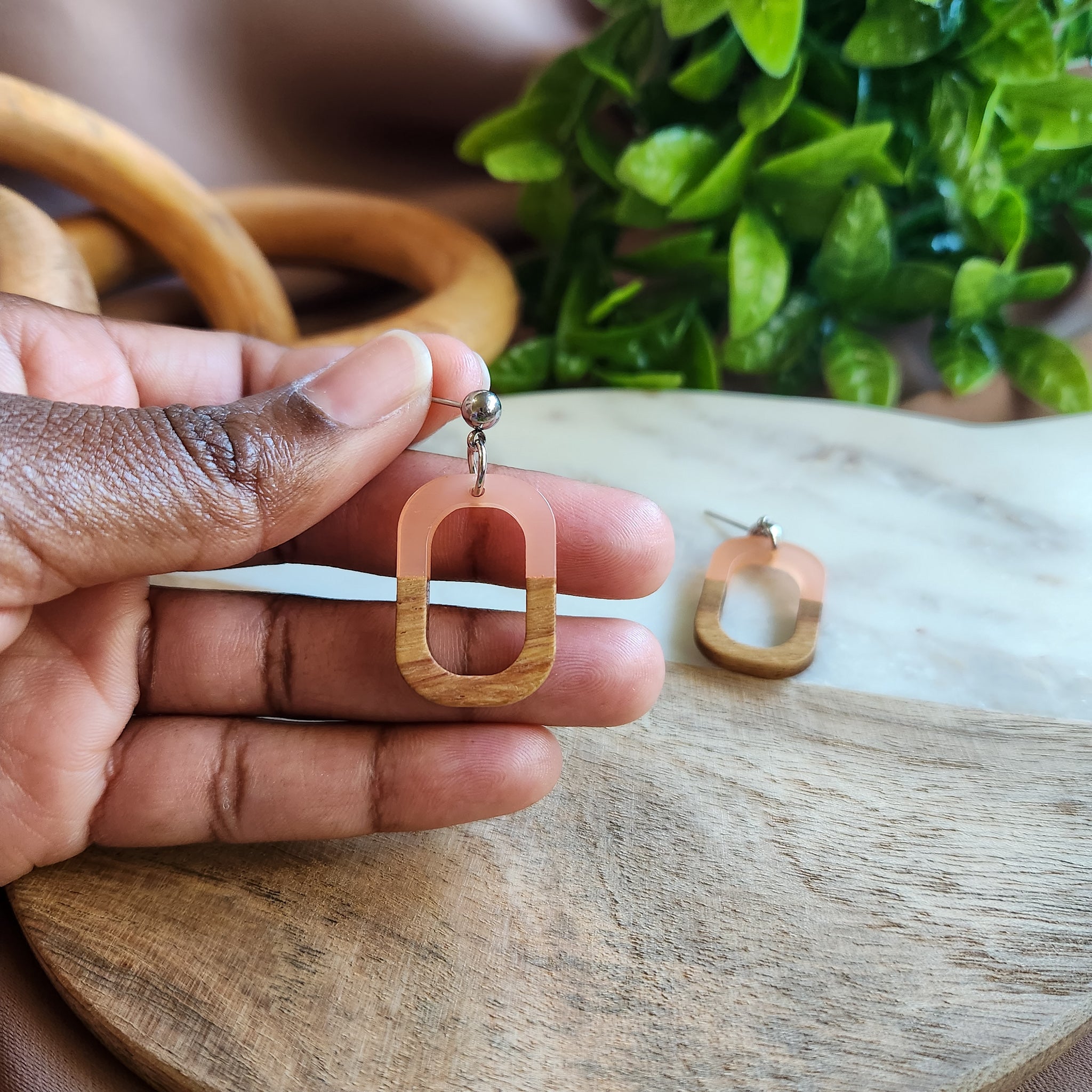 Introducing our exquisite Keep Me Blushing Dangles earrings, a perfect blend of elegance and playfulness that will add a touch of charm to any outfit. These captivating accessories are designed to make you blush with delight, showcasing a unique rectangular hoop shape with rounded corners and a mesmerizing pink hue.