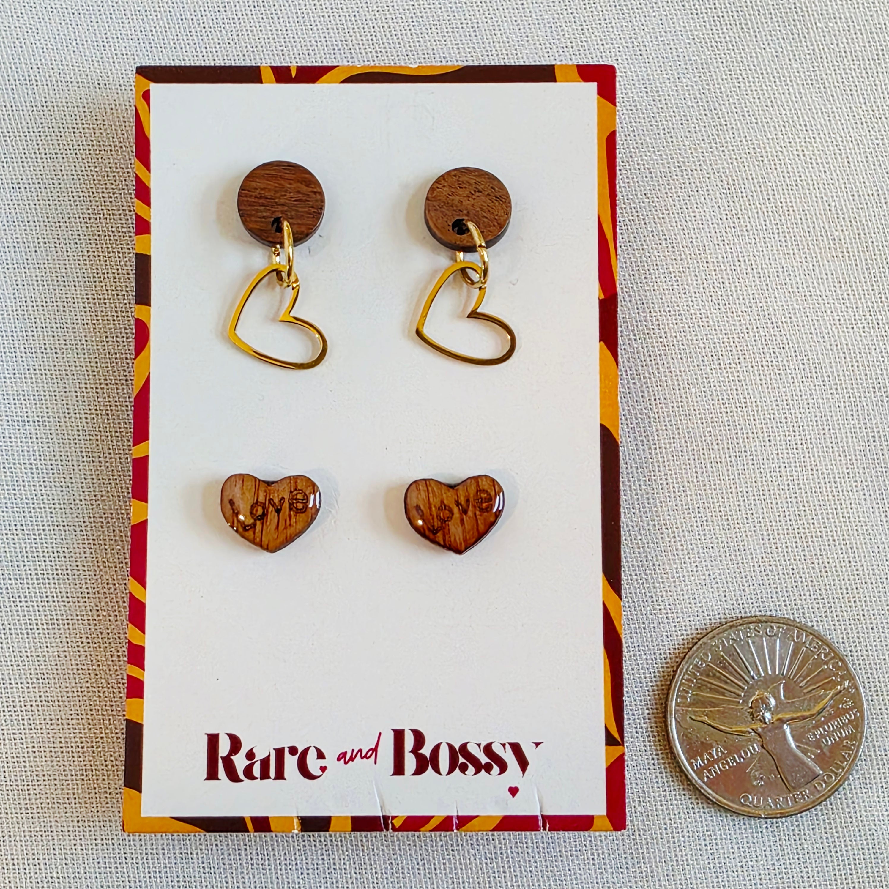 adds natural charm to any look. These lightweight Brown Heart Dangle Duo earrings are made